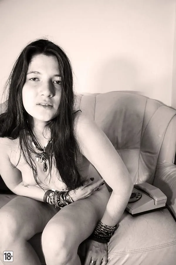 Фото с ретро настроением, где молодая русская девушка в чёрно-белом стиле снимается в момент интимной ситуации, используя старый проводной телефон. Всё это выглядит как из прошлого, но с современным оттенком. Много эмоций, драмы и ностальгии в каждом кадре.