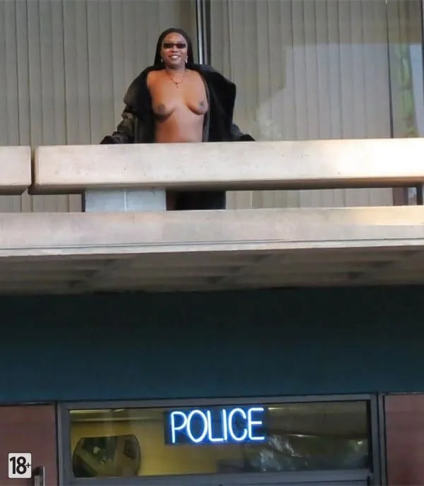 Негритянка в пальто на голое тело гуляет по улицам Америки
